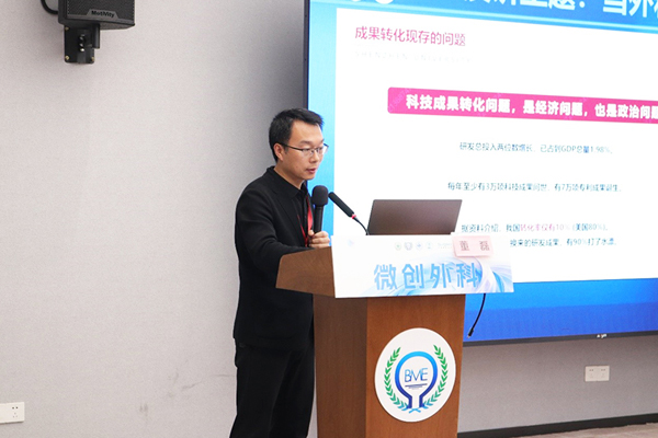 在学术会议开始之前,贺德教授针对“医工困境”分享了自己的见解。他提到,当前存在医生想法难以落地、企业成果又难以契合医生实际需求的问题;并指出转化中心是一个能链接企业、医院及高校等多方资源的平台,依托该平台,医生与工程师能够加强交流,切实把临床需求转化为工程实践成果。该平台为解决医工协作难题提供了新的思路和方向。
