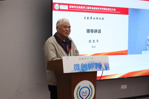 随后,深圳大学医学部生物医学工程学科创始人陈思平教授发表讲话。从微创外科的发展历程与当下现状切入,阐述了成立微创外科专委会的必要性。